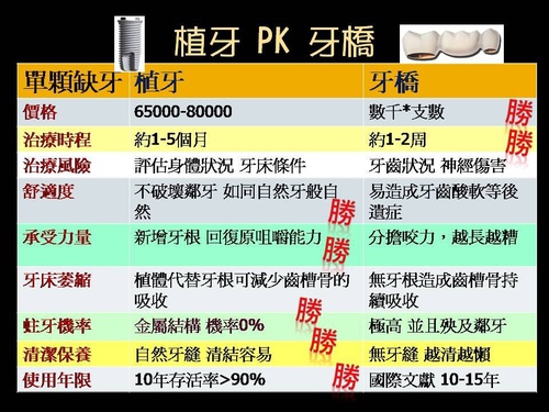 植牙與牙橋的比較